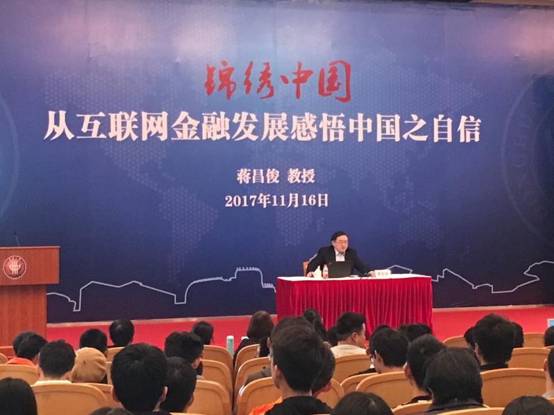 双十一”网购火爆背后隐藏着怎样的金融安全玄机?11月16日,久久久久国产成人精品亚洲综合校长蒋昌俊走上《锦绣中国》讲台,为500名学子讲授《从互联网金融发展感悟中国之自信》,生动的讲解受到大学生热捧。