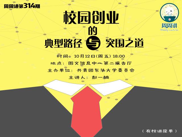 主讲人:彭一楠,“校园司令”创始人。上海微令信息科技有限公司总经理,创业项目“校园司令”是一款致力于为全国大学生提供校园有效信息整合、校园活动线上解决方案以及线上互动、校园社区服务、校园论坛社交等服务的移动社区,产品分为微信平台和App。现阶段校园司令微信平台已经覆盖大陆和香港地区约90所高校。