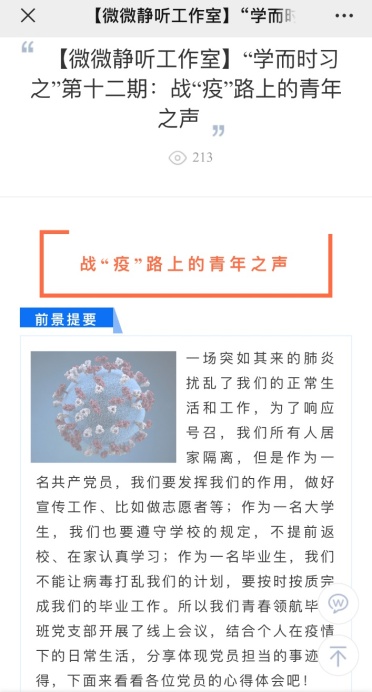 (“微微静听”网络文化工作室推出“战‘疫’路上的青年之声”)