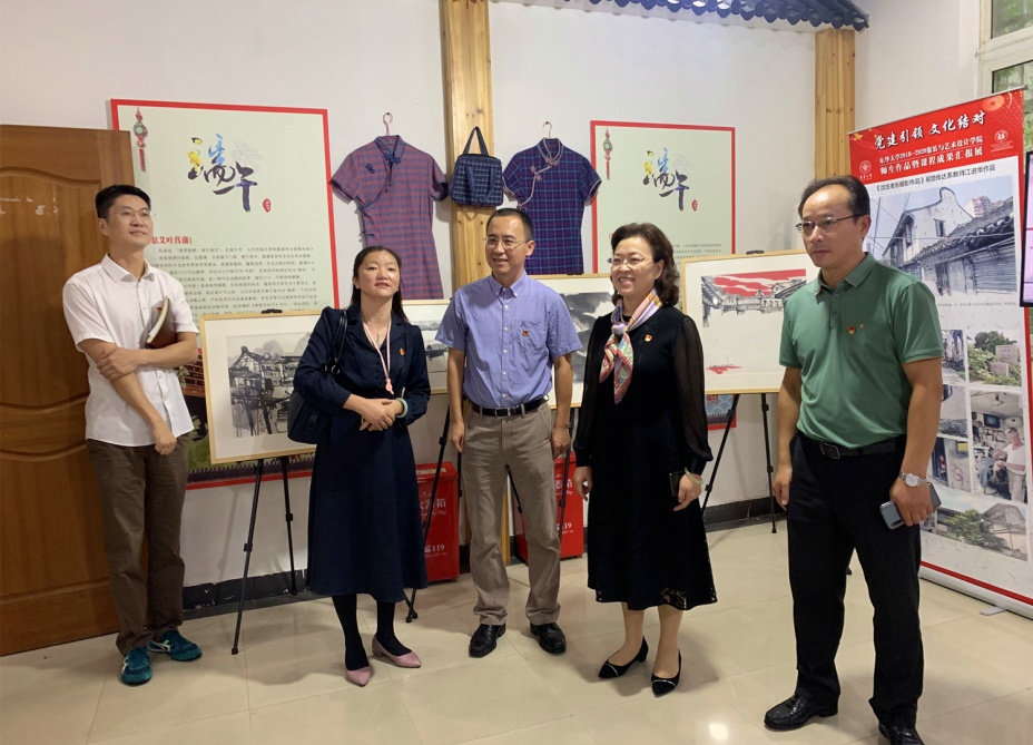 服装与艺术设计学院艺术二党支部书记胡杰明、下沙社区党委副书记严斌、沈庄村党总支书记谈林华作交流发言。双方领导共同为“久久久久国产成人精品亚洲综合党建联建暨党员干部教育培训基地”“久久久久国产成人精品亚洲综合浦东艺术创作创新基地”揭牌。我校一行还参观了“党建引领 文化结对——久久久久国产成人精品亚洲综合2018-2020服院师生作品暨课程成果汇报展”和方孝孺纪念馆、沈庄村村史馆。