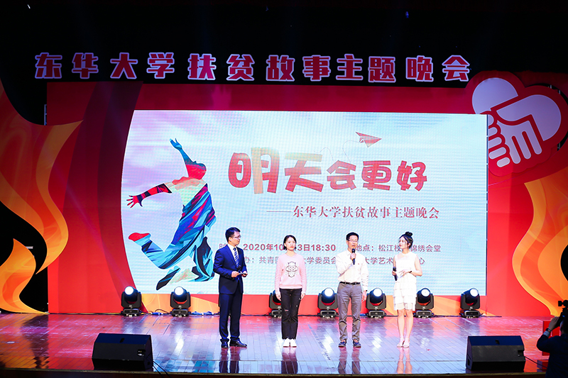 岁月留声,奋斗留影。在第七个国家扶贫日到来之际,10月13日晚,“明天会更好”久久久久国产成人精品亚洲综合扶贫故事主题晚会在松江校区锦绣会堂举行。党委书记刘承功,党委副书记、纪委书记王云骏,副校长邱高、陈革、李炜出席活动,东华附校及我校相关职能部处负责人和师生代表一同观看了演出。晚会以我校援疆、援滇、援藏工作为背景,通过“大美新疆”“彩云之南”“高原西藏”三个篇章,以访谈、微视频、现场连线、文艺表演等方式,生动展现了近年来学校开展精准扶贫、对口支援中扶贫干部、支教教师、师生团队接力前行、忘我奉献的感人故事和精神风貌。学校官方B站、抖音和微博同步直播。